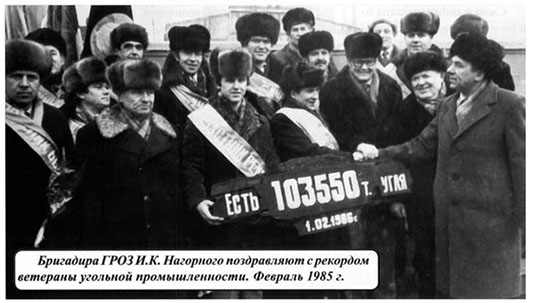 За январь 1986 года бригадой И.К. Нагорного было добыто 103550 тонн угля и установлен рекорд угольной отрасли по производительности труда. Бригада проходчиков, бригадир – Величко М.Т. тоже установила свой рекорд. Впервые за историю шахты «Привольнянская» за месяц ею было пройдено 533 метра выработки - вдвое больше установленной нормы.
