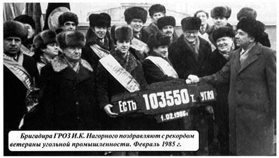 Вот что вспоминает о рекорде 1986 года В.И. Полтавец, который в то время занимал пост генерального директора ПО «Лисичанскуголь»: — Те годы отличались духом здорового соперничества, состязателъства. Мы постоянно интересовались, как идут дела у соседей-первомайцев, у антрацитовцев, свердловчан, краснолучан, краснодонцев, анализировали, почему вырвались вперед ровеньковские горняки, как бы нам на свои объекты заполучить лучшие силы шахтостроителей.